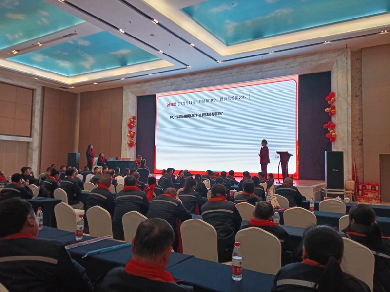 年會在活力四射的開場舞《向前沖》中拉開帷幕??偨?jīng)理發(fā)表重要講話,全面復(fù)盤2025年公司運營成果,并深入部署2026年戰(zhàn)略規(guī)劃,為公司發(fā)展指明方向。隨后的表彰環(huán)節(jié),對在核心指標(biāo)考核中表現(xiàn)突出的團隊與個人進行嘉獎,樹立榜樣力量。常務(wù)副總及7大部門負責(zé)人依次發(fā)言,分享經(jīng)驗、交流思路,凝聚發(fā)展共識。感恩環(huán)節(jié)全員共唱《感恩的心》,傳遞溫暖與感動;知識競賽環(huán)節(jié),各代表隊激烈角逐,展現(xiàn)員工扎實的專業(yè)素養(yǎng);制造中心副總發(fā)言后,知識競賽頒獎環(huán)節(jié)將現(xiàn)場氛圍推向高潮。原創(chuàng)舞臺劇《礪劍征程》以沉浸式表演,回顧公司發(fā)展歷程,引發(fā)全場共鳴。